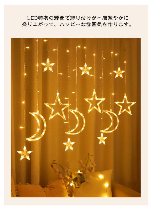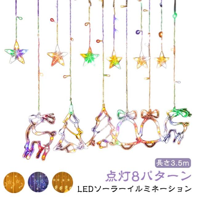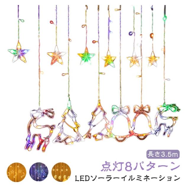 ソーラー イルミネーション LED イルミネーションライト ソーラーライト スター 星 月 カーテンライト 長さ3.5m リモコン付き クリスマス 電飾 LED オーナメント 屋外 防水 ソーラー充電式 クリスマスライト ストリングライト 自動点灯 庭 ガーデン キャンプ 室内 送料無料