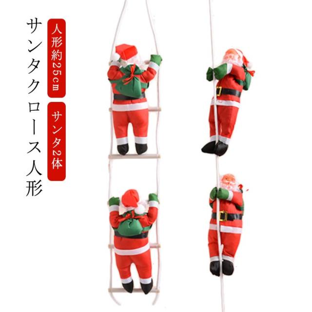 サンタ2体 クリスマス 飾り サンタクロース 人形 サンタ クリスマス クリスマスツリー オーナメント 飾り付け 人形25cm クリスマス はしご サンタ ロープ サンタさん クリスマスパーティー 飾りつけ 部屋 装飾 デコレーション インテリア クリスマス 飾り 送料無料