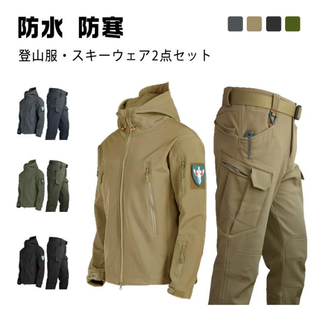 登山服 スキーウェア 2点セット 裏起毛 上下セット メンズ マウンテンジャケット ズボン 厚手 防水 防寒着 作業着 大きいサイズ アウトドアウェア 釣り スポーツ