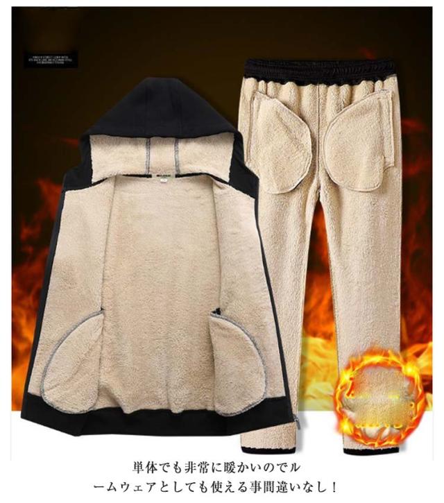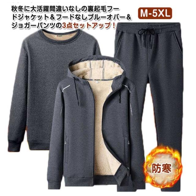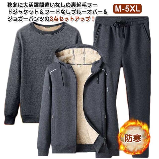 プルーオバー&ジップアップ2点トップス!ボアパーカー セットアップ メンズ 3点セット ボア パーカー ジャージ トレーナー 上下セット ロングパンツ ルームウェア 防寒 あったか もこもこ 秋冬 厚手 スポーツウェア カジュアル シンプル