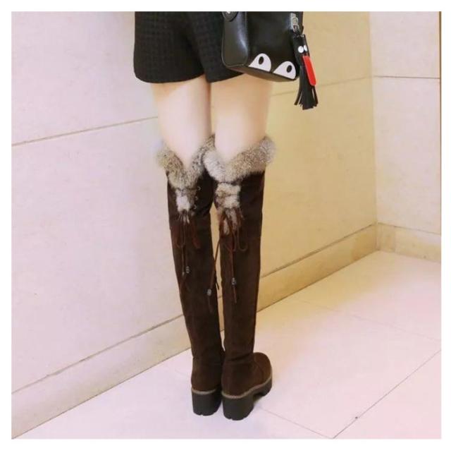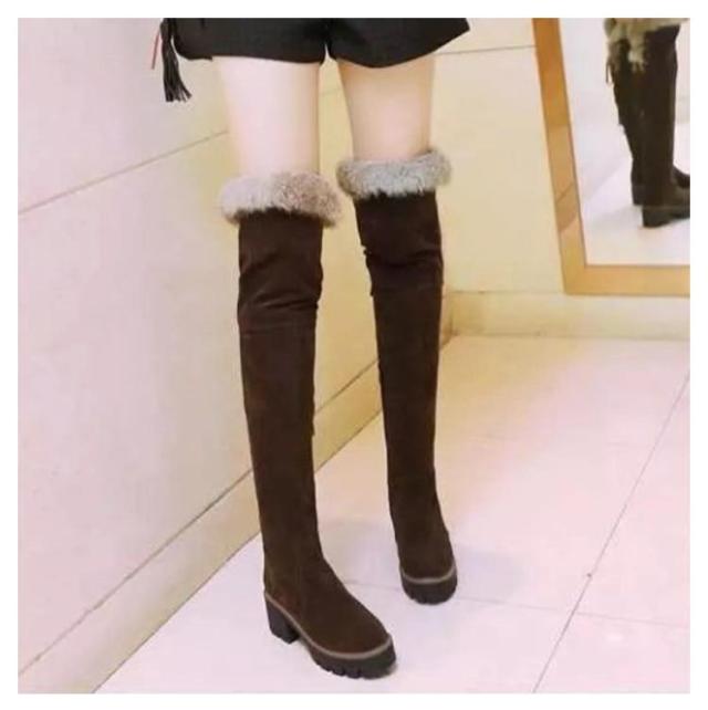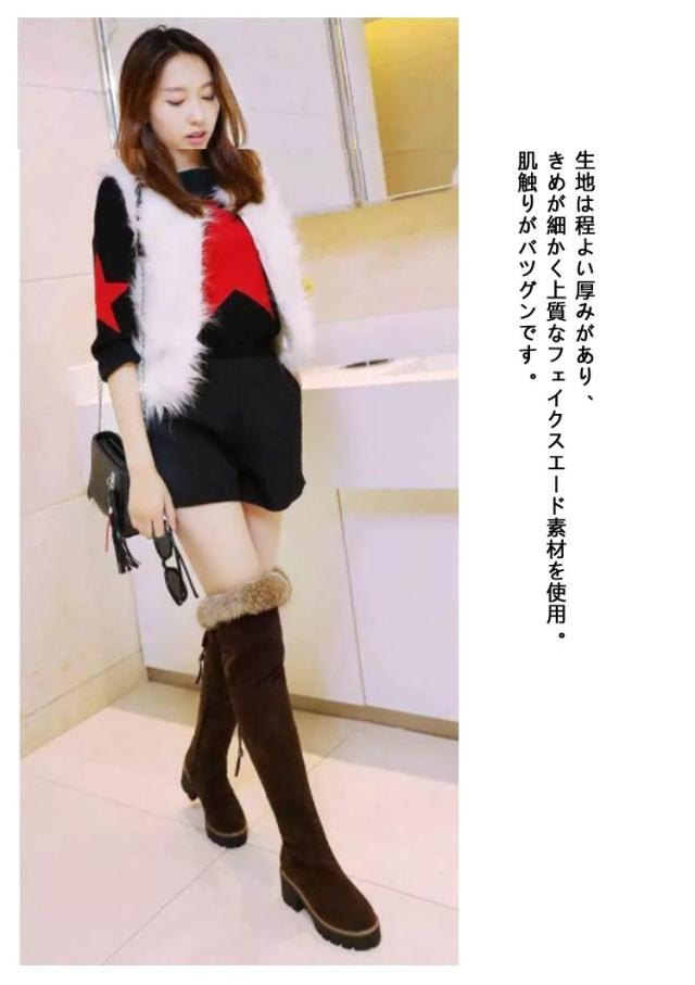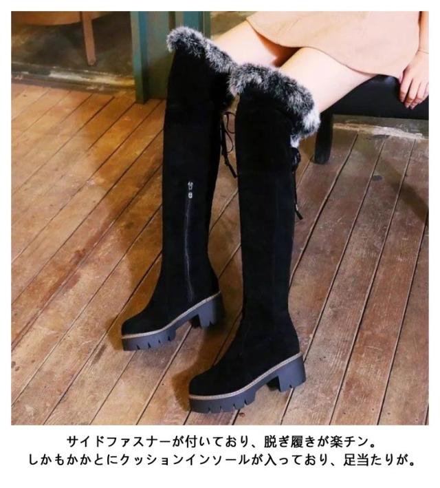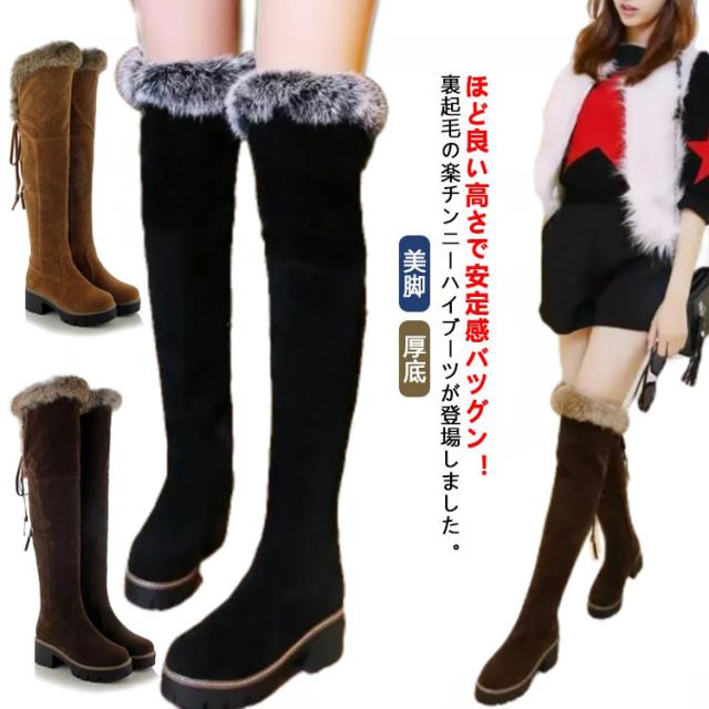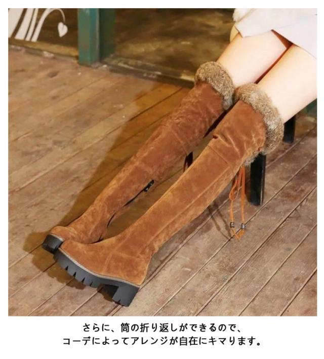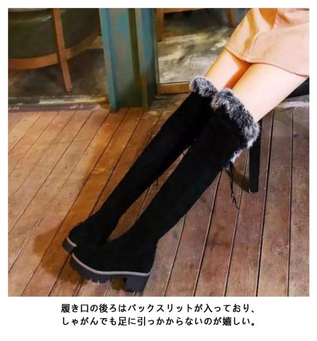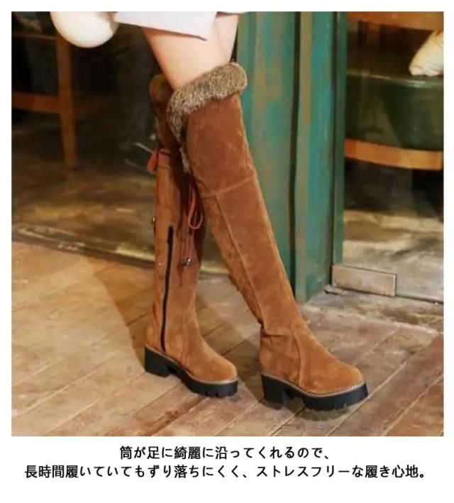 ニーハイブーツ ふくらはぎ ロングブーツ ジョッキーブーツ 厚底 美脚 ストレッチ ムートンブーツ スノーブーツ スエードブーツ ボア ニーハイブーツ 裏起毛 あったか スムース 細見せ 秋冬 疲れにくい ブラウン ブラック