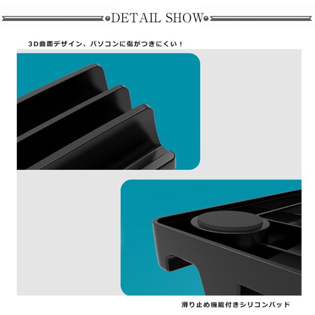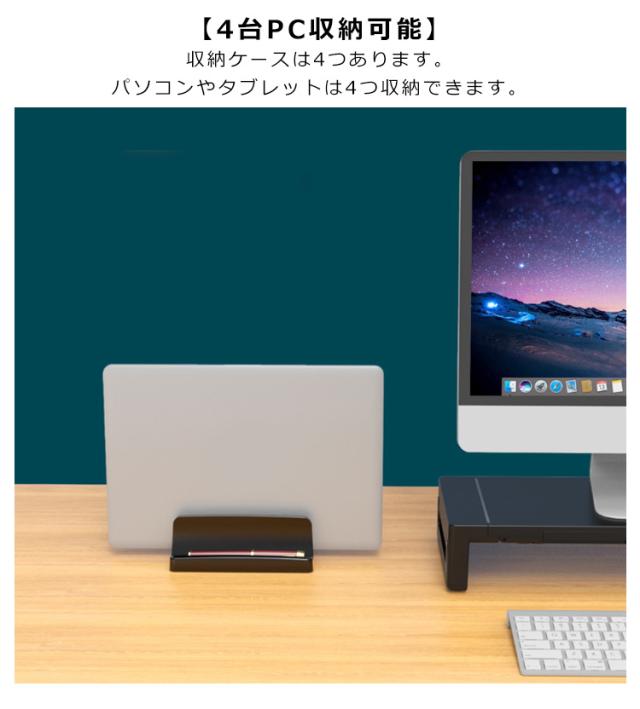 | 縦置きタイプで放熱対策にピッタリ! 縦置きPCスタンド 【高級感ある質感】高密度ABS素材はオシャレで高級な質感を持ちます。 【4台PC収納可能】収納ケースは4つあります。パソコンやタブレットは4つ収納できます。 【滑り止め機能付き】底面にも滑り止めシリコンパッドがあり安定性に優れています。 【放熱性UP!】ノートパソコン独特の熱問題も解決!縦置きタイプなので放熱対策としても◎ | |