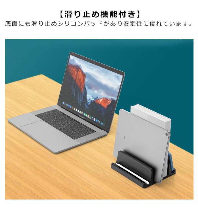 ノートパソコン スタンド 縦置き クラムシェル PCスタンド ノートPCスタンド クラムシェルスタンド 2台 4台 収納 可能 垂直 リッドクローズモード MacBook Air Pro iPad laptop タブレット スマホ 対応 本棚代わり 縦置きスタンド スペース節約 滑り止め 軽量 コンパクト
