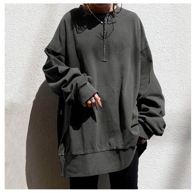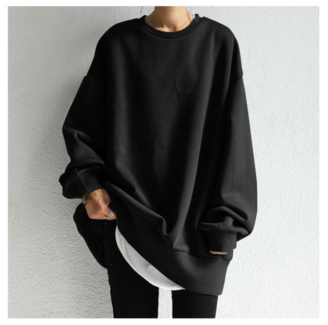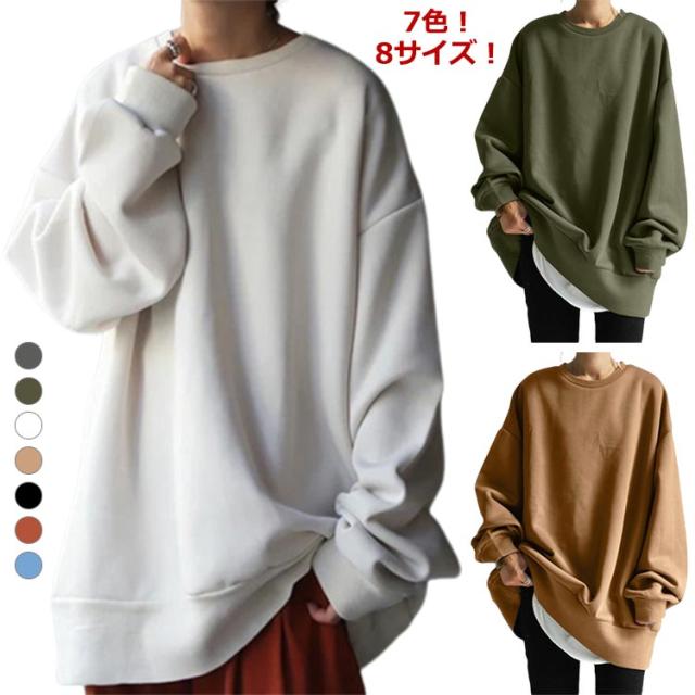 【送料無料】トレーナー レディース メンズ トレーナー スウェット ゆったり 春秋冬 ロング丈 ビッグシルエット 重ね着 体型カバー ペアルック スウェット カップル ペア スウェット おしゃれ カジュアル 丸首 プルオーバー レイヤード 無地 大人カジュアル 抜け感