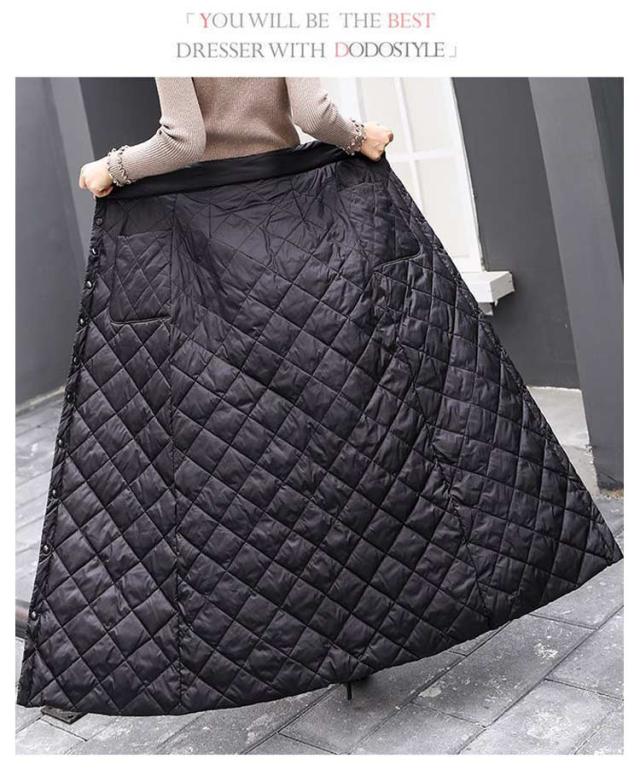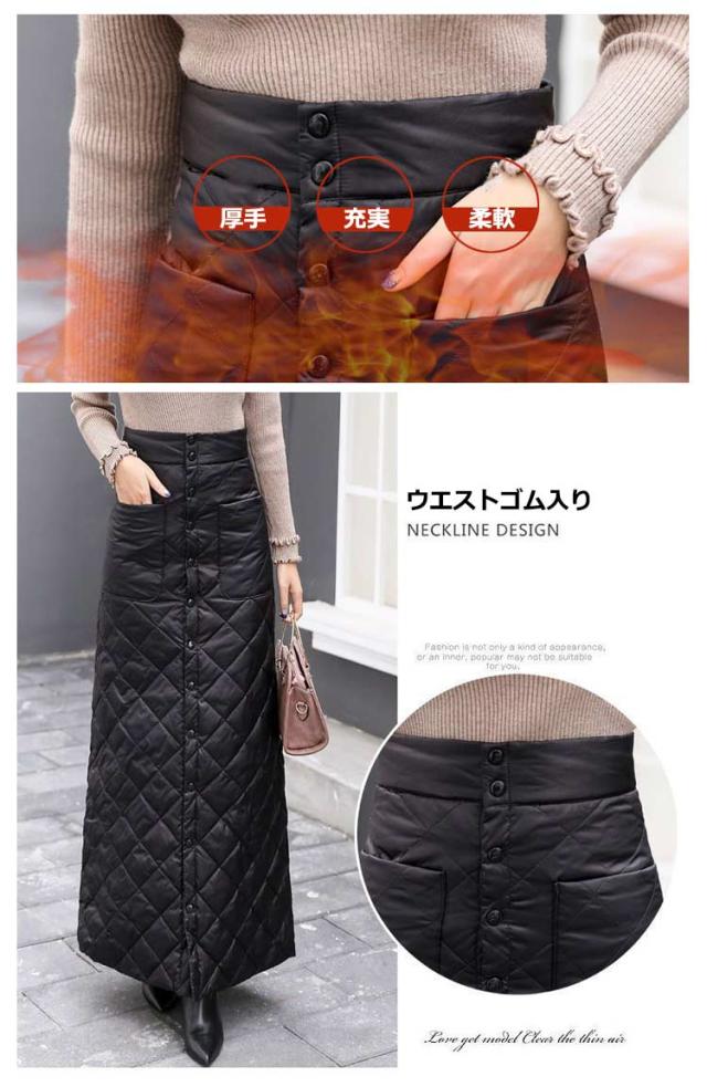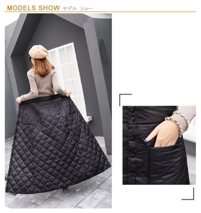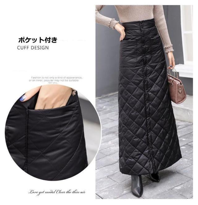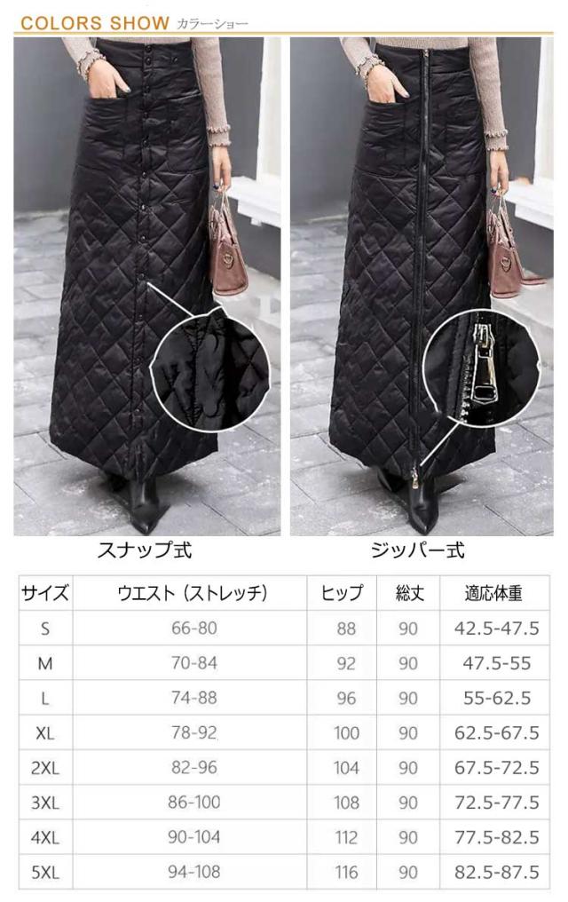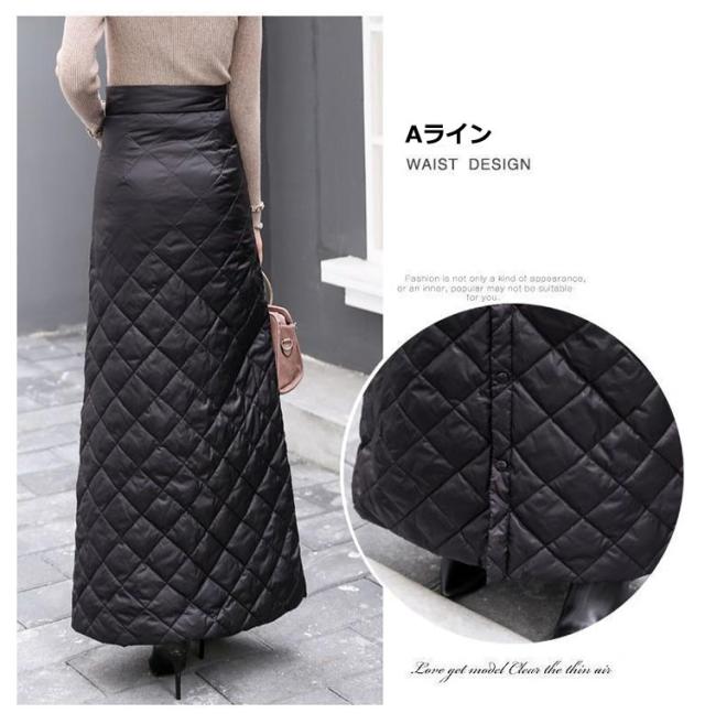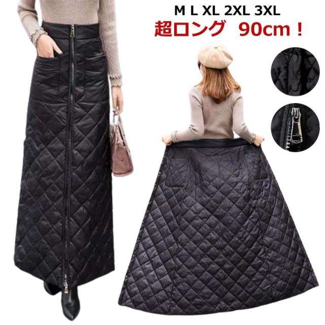 巻きスカート 防寒 秋冬 超ロング丈 キルティング ラップスカート スナップ式 ジッパー式 めくれ防止 暖かい あったかい 大きいサイズ キャンプ アウトドア ロングスカート 冬用 厚手 超軽量 レディース 無地 キルト マキシスカート 黒 ブラック 送料無料