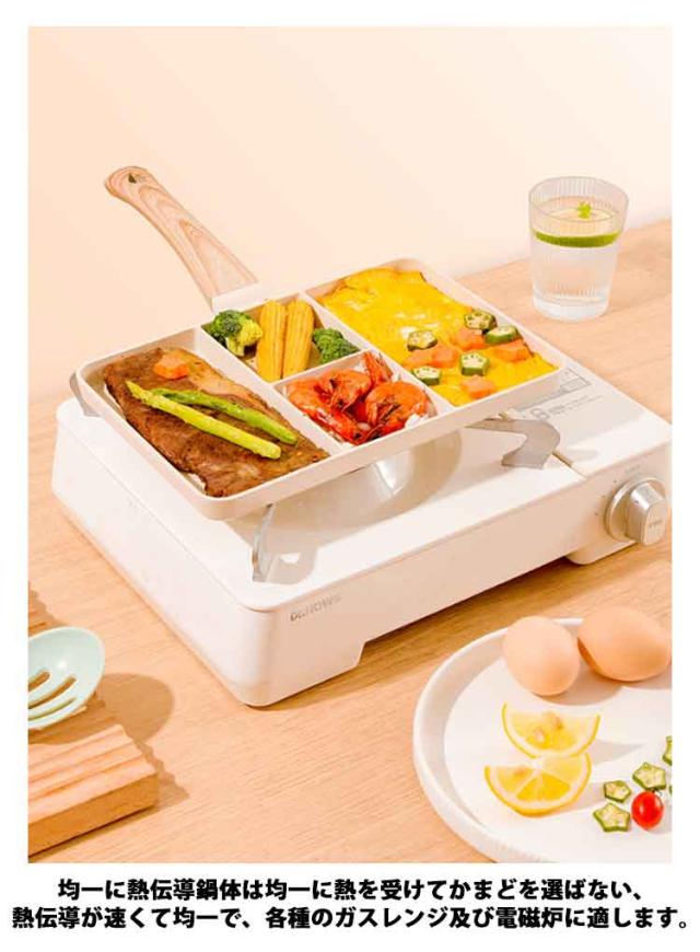 フライパン 仕切り付き マルチパン 4つ穴 くっつかない 洗いやすい 卵焼き 目玉焼き IH対応 大判焼き器 お弁当 焼おにぎり 卵焼き器 四角 くっつくことがなく お手入れ簡単 ガス対応 弁当作り 朝食 角型 調理 簡単 時短 焦げ付きにくい 同時調理 ステーキ