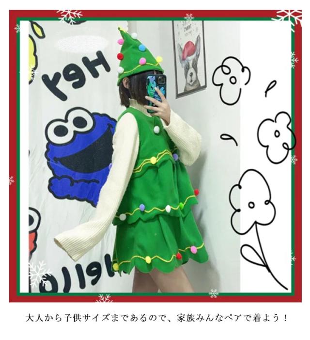 ワンピース クリスマスツリー 子供 クリスマス コスプレ 大人 レディース 仮装 衣装 服 ワンピース+帽子 コスチューム 子供服 男の子 女の子 イベント パーティー 学園祭 演出 大きいサイズ かわいい クリスマス ギフト 110 120 130 140 150 160 170 送料無料