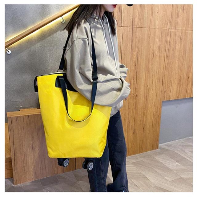 | 4輪タイプで安定感抜群です。 機内持ち込みも可能サイズ。 トートバッグをそのままキャリーカートに乗せた様で、 シンプルにおしゃれに決まる折り畳み式ショッピングカート。 使わない時折りたたんでコンパクトに収納可能。 撥水オックスフォード製なので、丈夫で撥水効果も◎。 後ろポケットもしっかり付いているので、ちょっとした時に取り出したい旅のパンフレットや資料なども気軽に入れられます。 プレゼントにも最適。お年寄りにも安心。組み立てた状態でのお届けになります。箱から出してすぐ使える便利さです。 ピクニック、旅行、ランドリー用などあらゆるシチュエーションに対応! | |