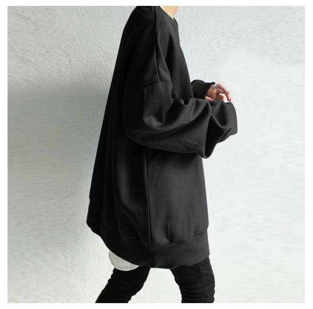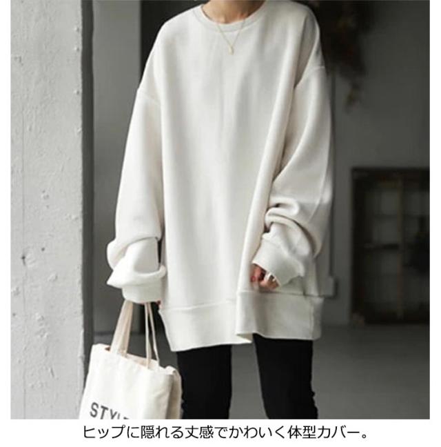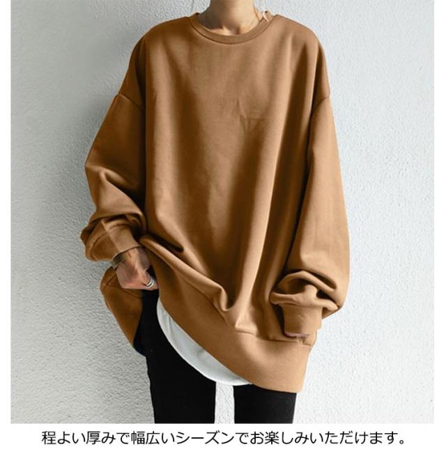 【送料無料】トレーナー レディース メンズ トレーナー スウェット ゆったり 春秋冬 ロング丈 ビッグシルエット 重ね着 体型カバー ペアルック スウェット カップル ペア スウェット おしゃれ カジュアル 丸首 プルオーバー レイヤード 無地 大人カジュアル 抜け感