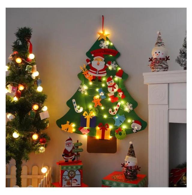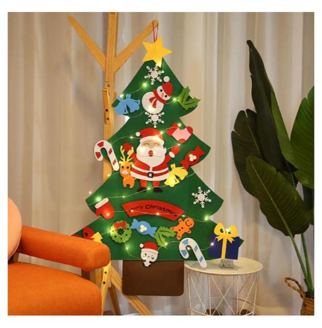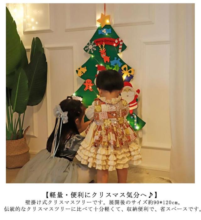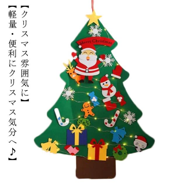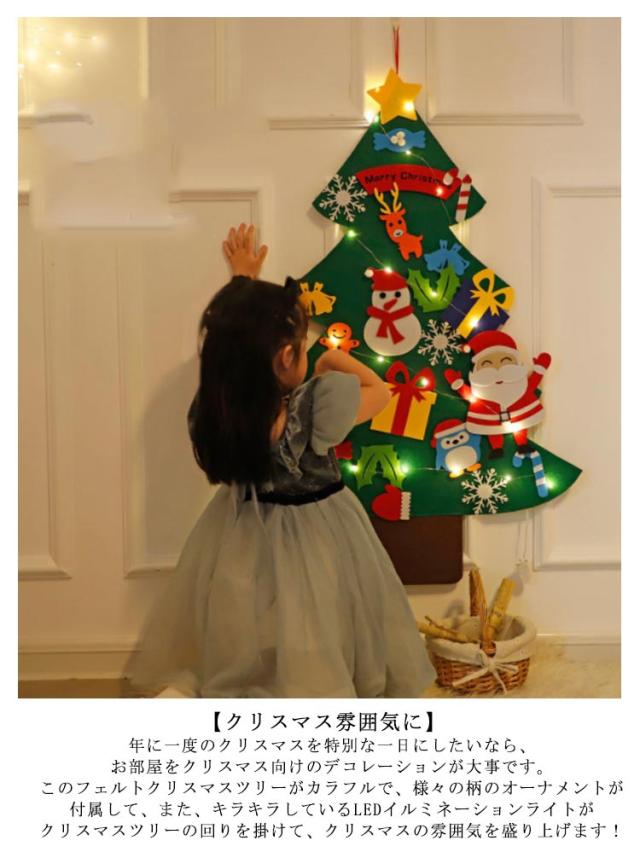 クリスマスツリー 壁 フェルト 壁掛け タペストリー LED イルミネーション クリスマス LEDライト 飾り デコレーション DIY 子供知育 布 家族 学校 ライト オーナメント 電飾 セット ツリー 北欧 SNS 写真 ギフト プレゼント 玄関 リビング おしゃれ 手作り 2023新作