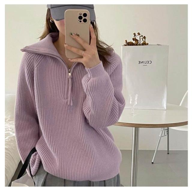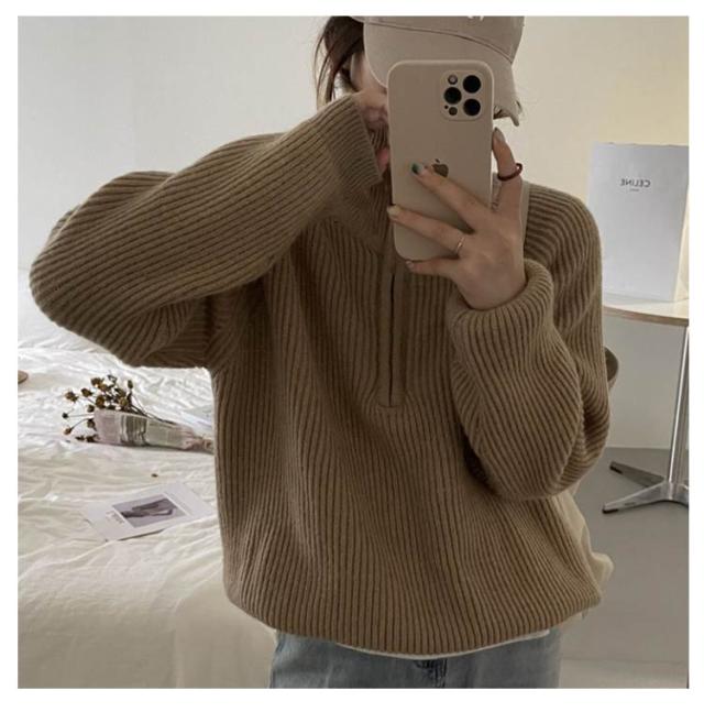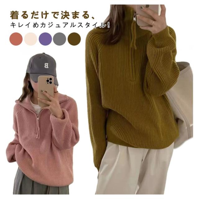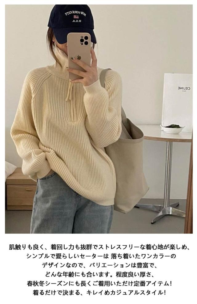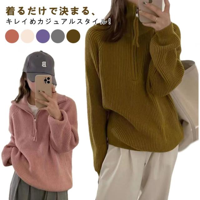 無地 長袖 ファスナー ニット セーター レディース 長袖 タートルネック Vネック カットソー パーカー ゆったり トップス ファスナー 春 秋 冬 服 無地 おしゃれ ファッション 可愛い ふんわり 韓国風 人気 オーバーサイズ 体型カバー 暖か