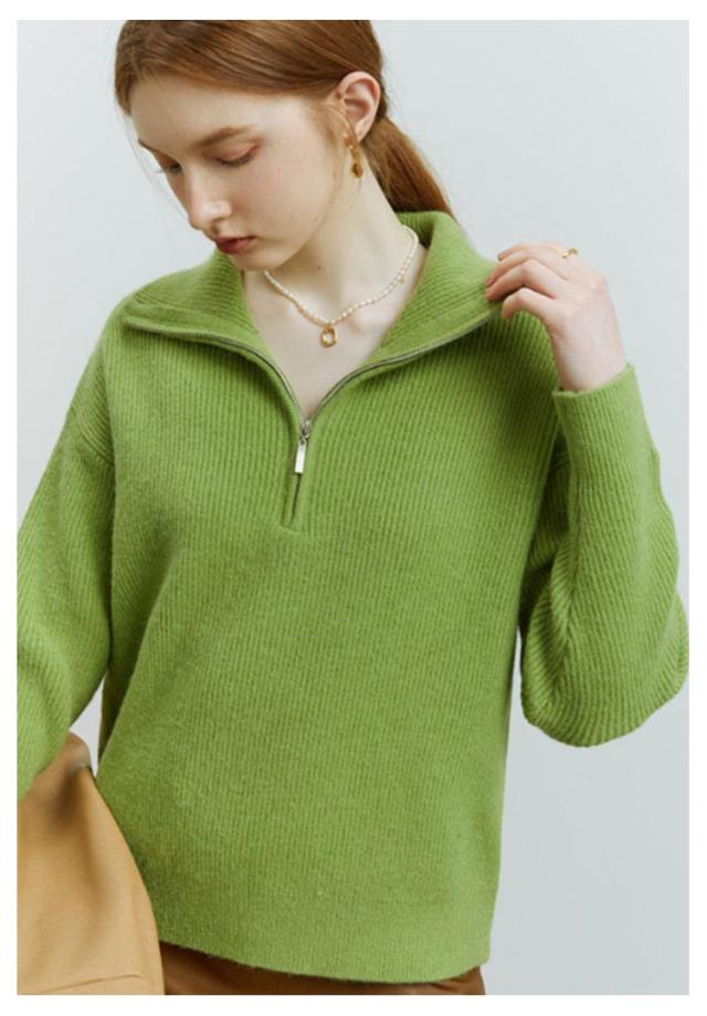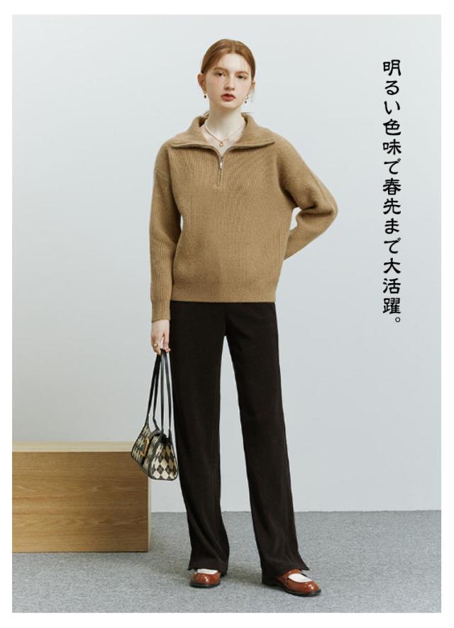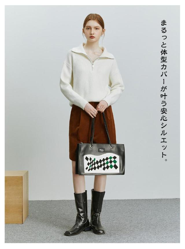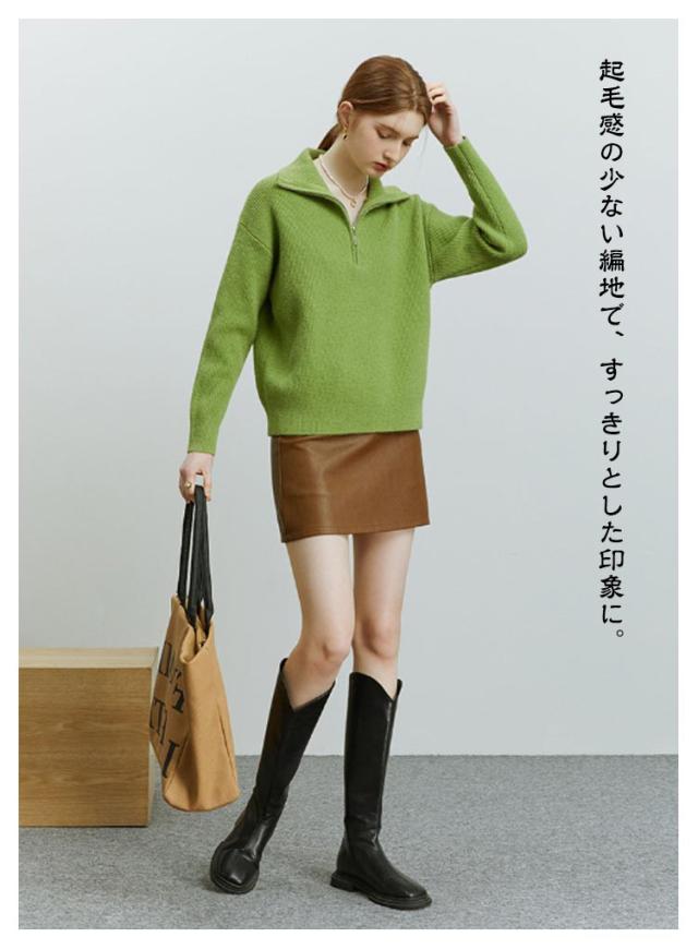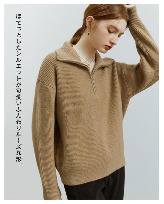 | トレンドが続くハーフジップデザイン。 ただのニットよりも今っぽい雰囲気にしてくれます。 まるっと体型カバーが叶う安心シルエット。 起毛感の少ない編地で、すっきりとした印象に。 軽くてもちっとした肌触りが特徴的。 一度着ると何度も着たくなるような着心地。 | |