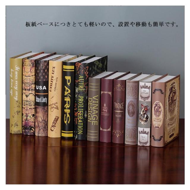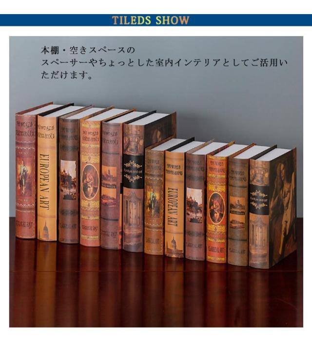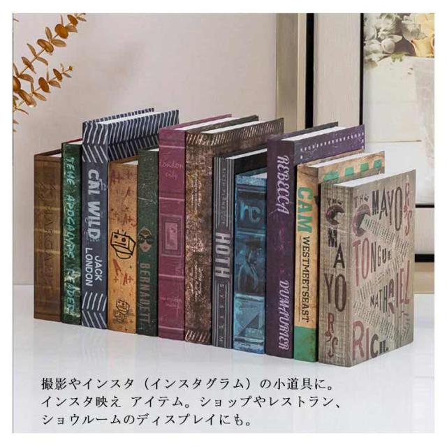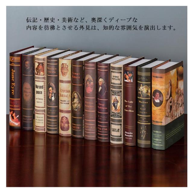 | 古い書物を模した、洋書型のフェイク(偽)本です。 本棚・空きスペースのスペーサーやちょっとした室内インテリアとしてご活用いただけます。 伝記・歴史・美術など、奥深くディープな内容を彷彿とさせる外見は、知的な雰囲気を演出します。 撮影やインスタ(インスタグラム)の小道具に。 インスタ映え アイテム。ショップやレストラン、ショウルームのディスプレイにも。 板紙ベースにつきとても軽いので、設置や移動も簡単です。 | |