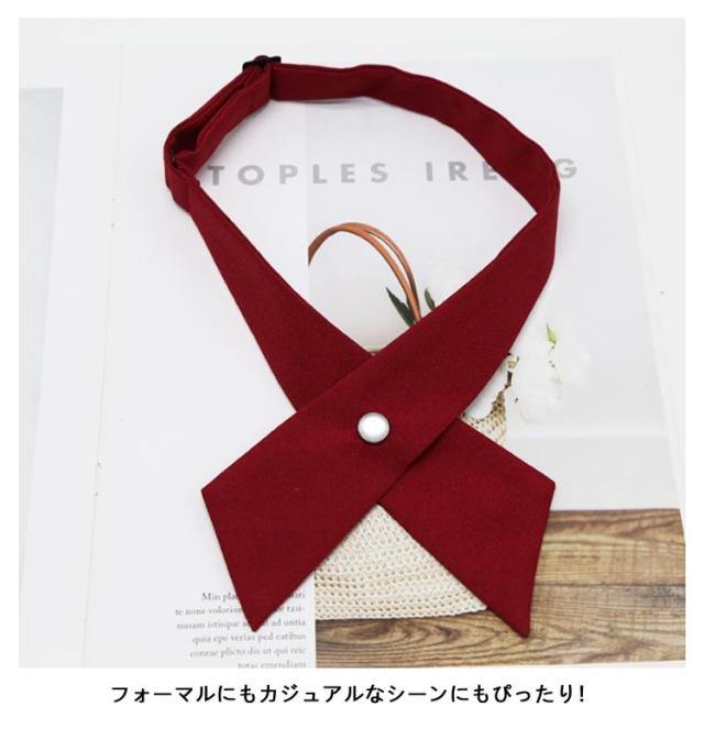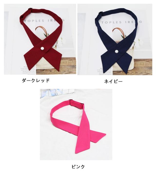 送料無料 クロスタイ リボンタイ ボウタイ 蝶ネクタイ 脱着やすい ブローチ スクール 制服 高校生 りぼん リボン スナップボタン 長さ調整できる 制服リボン レディース 女子 無地 シンプル 衣装 フォマール オフィス ビジネス カジュアル かわいい お洒落