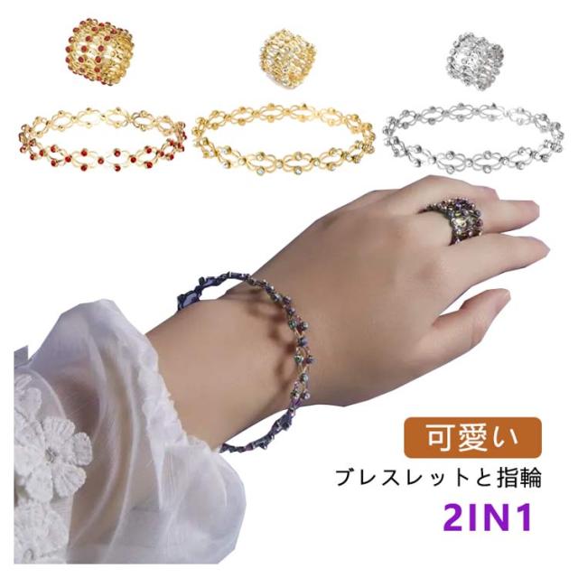 送料無料 ブレスレット 指輪 2in1 きらきら 調整可能 折りたたみ式 ブレスレット リング 指輪 レディース メンズ シンプル 可愛い 人気 おしゃれ アクセサリー 小物 誕生日 プレゼント 結婚記念日