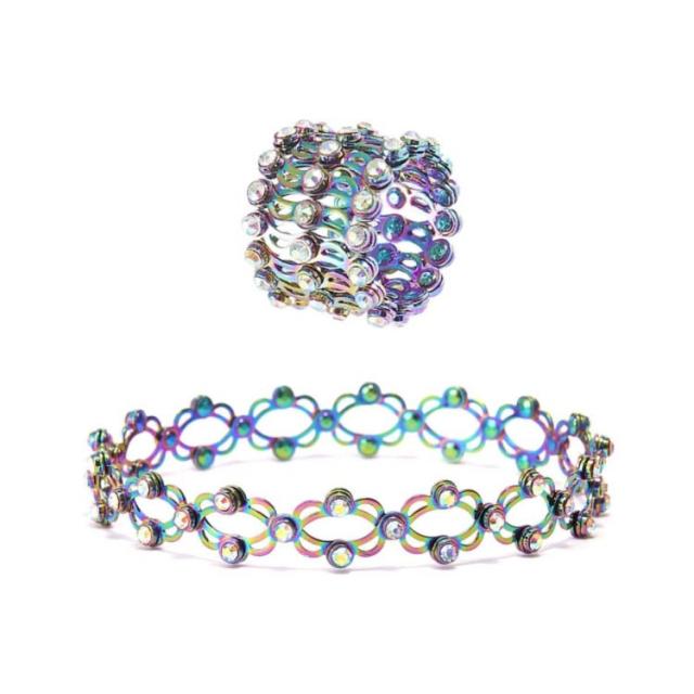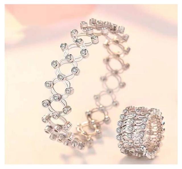 | ブレスレットと指輪 2in1 一度広げると、ブレスレットになります。縮めると指輪としてもご使用いただけます。 キラキラと輝くデザインが大人の魅力を演出します。 結婚式、二次会、謝恩会、式典、お呼ばれ、パーティー。新年、クリスマス、誕生日、記念日、特別日、恋人、家族、友達に大切な方へのお贈り物にオススメです。 | |