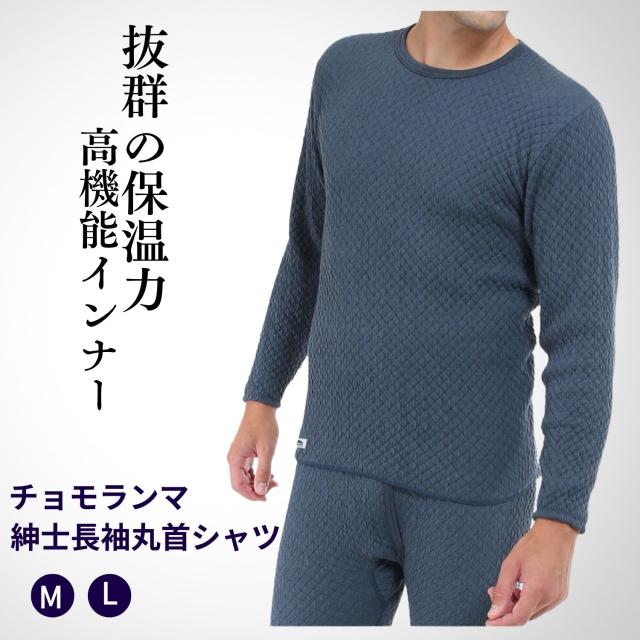 ひだまり 肌着 メンズ インナーシャツ チョモランマ 厚手 防寒 冬 温かい 長袖U首 日本製 ネイビー 送料無料 冬ギフト プレゼント