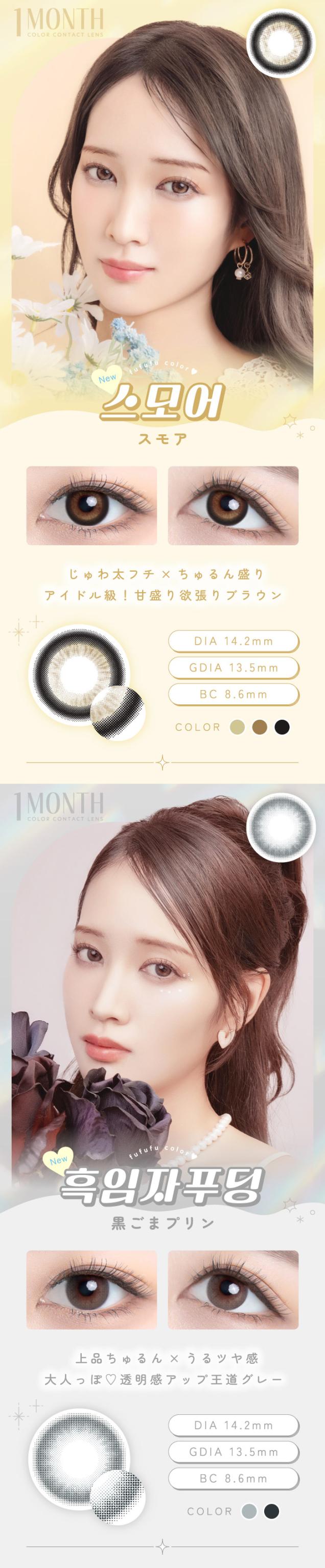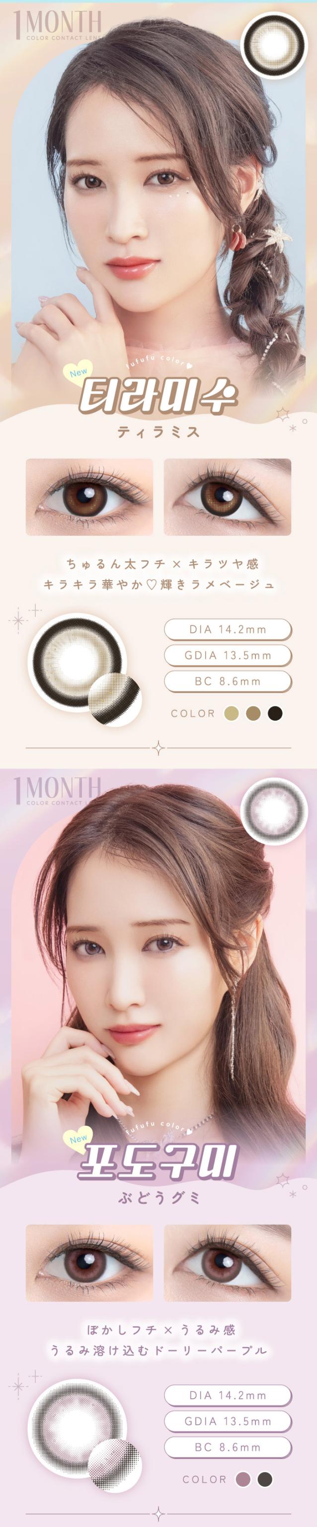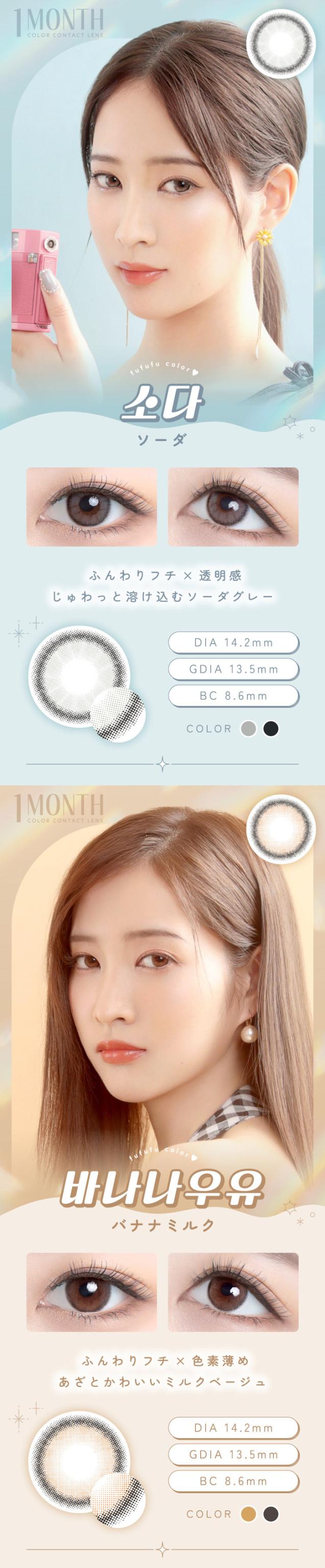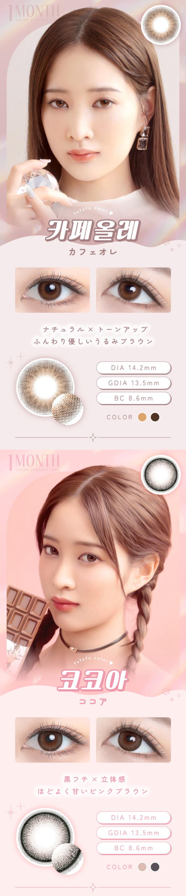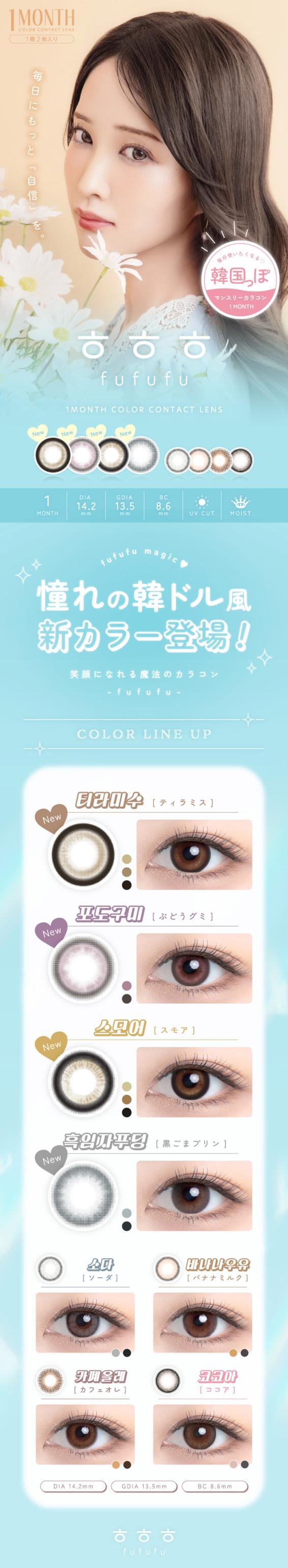 【1箱無料】カラコン 1ヶ月 度あり 度なし FUFUFU(ふふふ) マンスリー RIKA DIA14.2mm BC8.6 UV 1箱2枚入り×3箱セット 低含水 小さめ 水光感 自然 可愛い カワイイ
