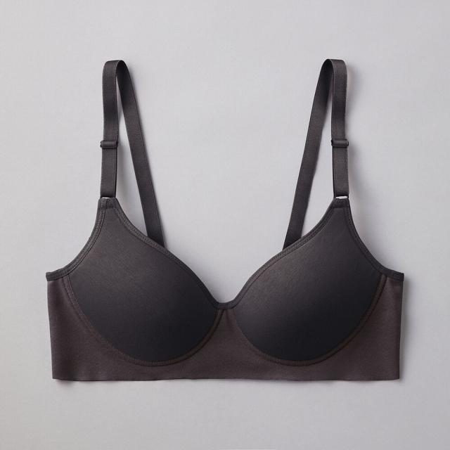 ノンワイヤーで締め付けずにバストをやさしく整えます。カップ部分はつるんとした、モールドカップタイプなので、洋服にラインが響きにくく、バストも立体的でキレイなシルエットをつくります。