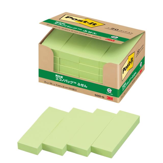 ポストイット 付箋 ふせん グリーン 75×25mm 100枚×20パッド 5001-G