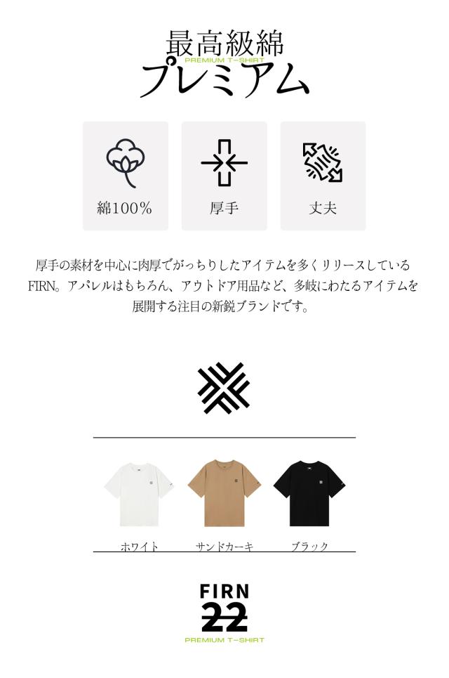 Tシャツ ベーシック カットソー 綿100% 半袖 ゆったり 透けない 定番 シンプル 厚手 五分袖 メンズ FIRN フィルン