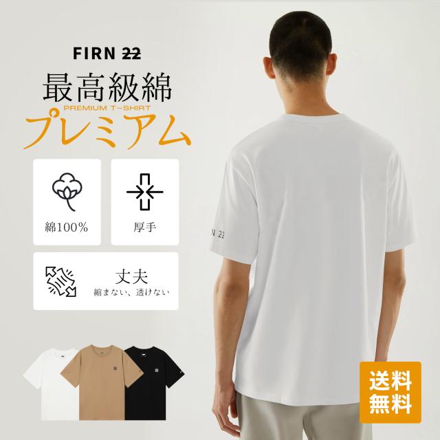 Tシャツ ベーシック カットソー 綿100% 半袖 ゆったり 透けない 定番 シンプル 厚手 五分袖 メンズ FIRN フィルン