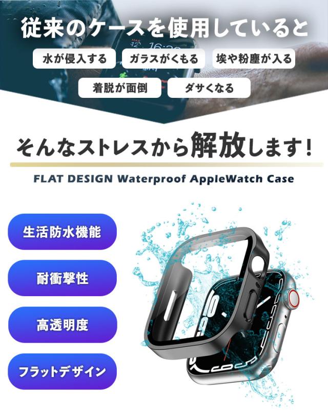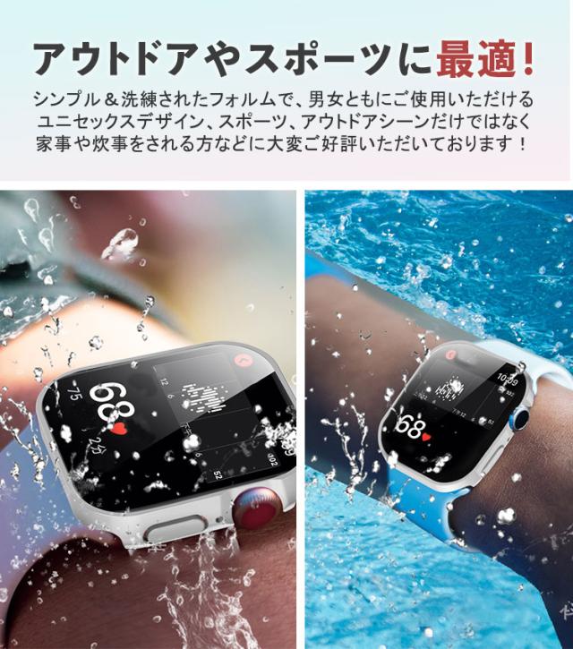 アップルウォッチ カバー 10 9 防水 防水ケース 防水カバー フラットカバー Apple Watch 8 7 6 5 4 SE SE2 46mm 強化ガラス ガラスフィルム 硬度9H ultra スポーツ IP68 一体型 ケース 45mm 41mm 49mm 44mm 42mm 40mm アップルウォッチカバー 全面保護 アウトドア