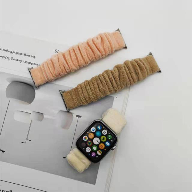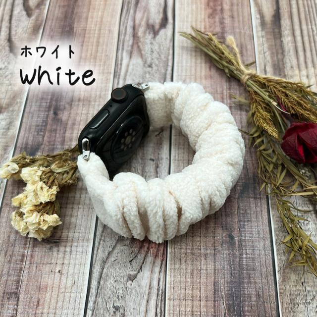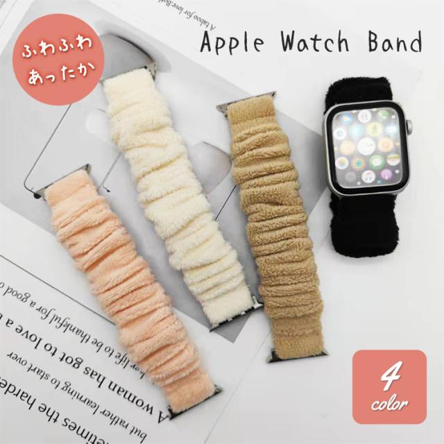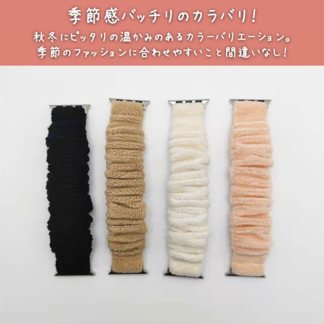 アップルウォッチ バンド シュシュ レディース 秋 冬 かわいい apple watch ふわふわ 女性 おしゃれ スリム 細め もこもこ 49mm 41mm 45mm 38mm 42mm 40mm アップルウォッチベルト 伸縮 series 8 7 SE ultra 6 5 4 3 2 1 温かい 防寒