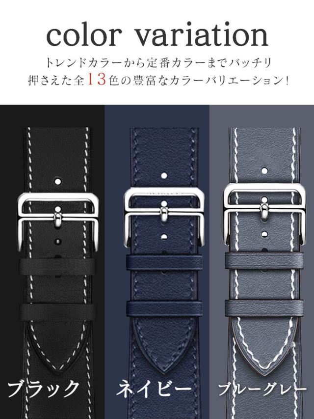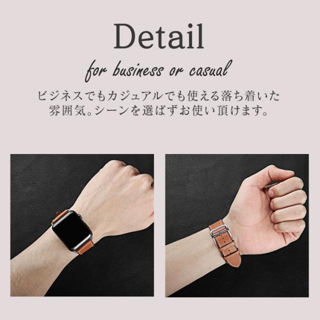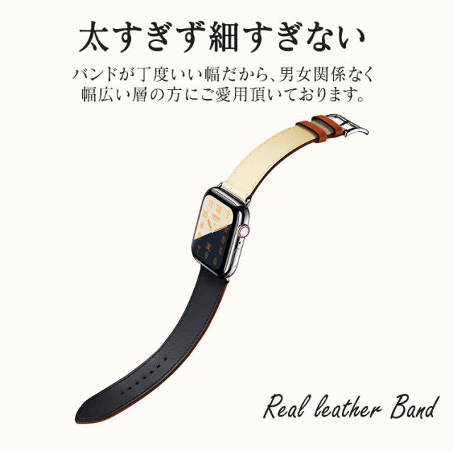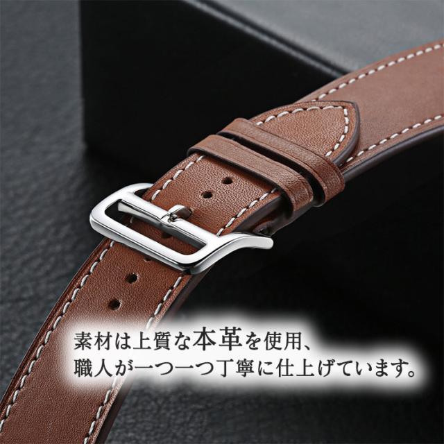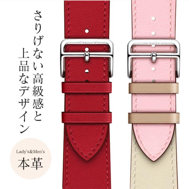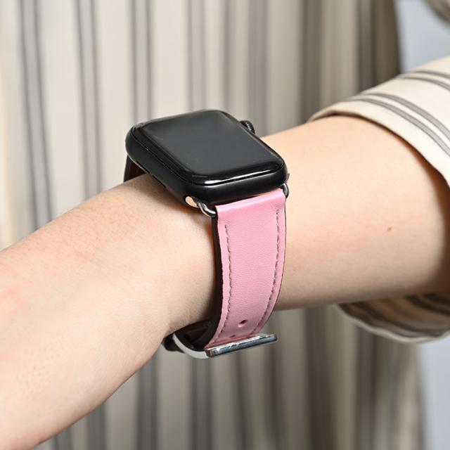 ■本革で作ったバンド厳選した牛革を使用したアップルウォッチバンド。なめらかな肌触りで自然に手首にフィットするので、着け心地快適です。■オシャレなデザイン普段のアップルウォッチをオシャレな腕時計のように変身させます。シンプルで上品なデザインなので、ビジネス、カジュアル、男女問わず様々なシーンでお使いいただけます。■豊富なカラバリ定番カラーからトレンドのカラーまで豊富な11色のカラバリ!お好きなカラーがきっと見つかります。◆対応サイズ