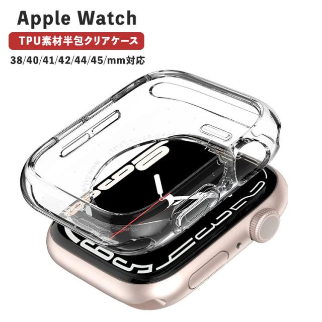 アップルウォッチ 10 9 カバー 半面保護 series10 series9 series8 series7 series6 series SE series5 SE2 ケース クリア 透明 TPU ULTRA シリコン おしゃれ かわいい ブラック Apple Watch 46mm 49mm 45mm 44mm 42mm 40mm 41mm 38mm アップルウォッチカバー ウルトラ