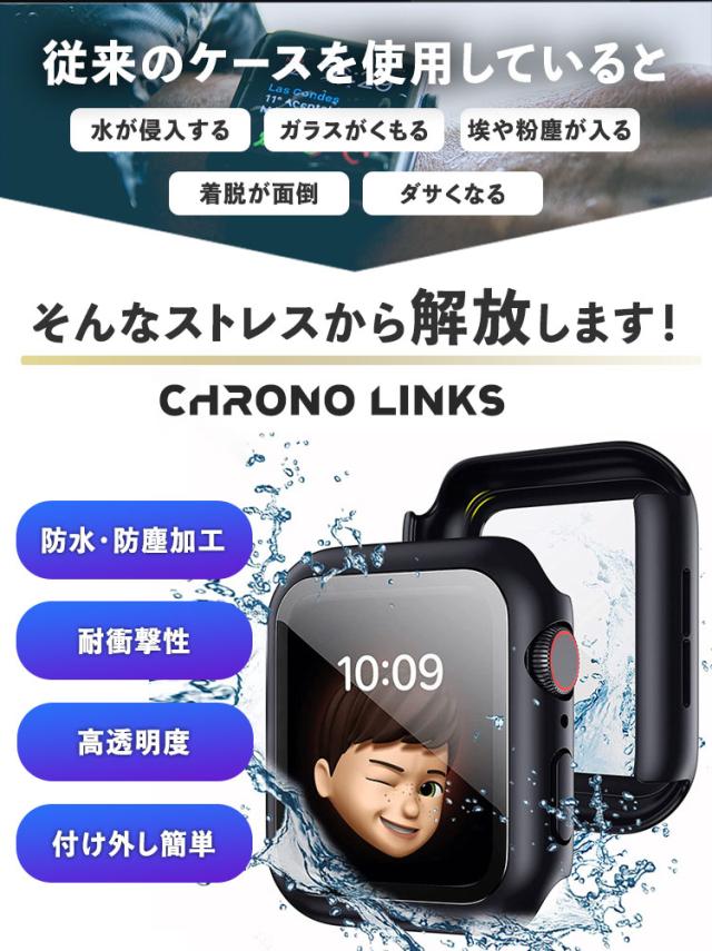【CHRONO LINKS】 アップルウォッチ カバー 10 9 8 7 6 防水 防塵 46mm 42mm ULTRA 強化ガラス ガラスフィルム IP68 一体型 ケース スターライト スポーツ アップルウォッチケース apple watch 49mm 41mm 44mm 45mm 40mm SE SE2 防水ケース 防水カバー 全面保護