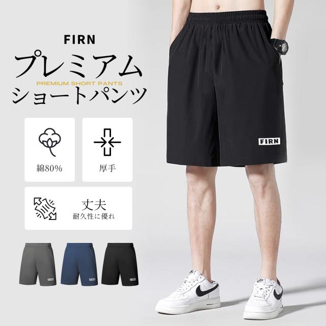 ショートパンツ 熱転写ロゴ スウェット メンズ 夏 五分丈 ハーフパンツ 綿 ポケット付き カジュアルウエア 柔らかい 通気性 伸縮性 吸汗 FIRN フィルン