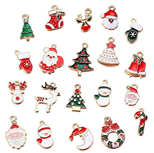 ・20個クリスマスチャームクリスマス 装飾パーツ:20種類 、20個入り。雪だるま、サンタクロース、クリスマスツリー、ブーツ、トナカイ、ベル、ギフト、手袋、スノーフレーク、ヘラジカ、ロリポップなどのクリスマス要素を含むのチャームパーツ。デザインが多くて、いつでも自分のニーズに応じて、自由に組む合わせができます。