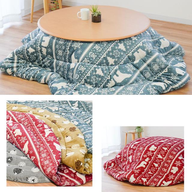 当社限定 円形 こたつ 掛け布団 フランネル ひつじ シロクマ 直径205cm アニマル柄 こたつ敷き布団にも ブルー レッド ベージュ グレー