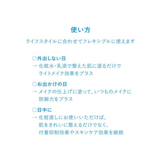 ※商品のSPF表示及びPA表示は、国際SPF試験法に定められている塗布量1平方センチメートルあたり2mgを皮ふに塗布して測定した結果です。