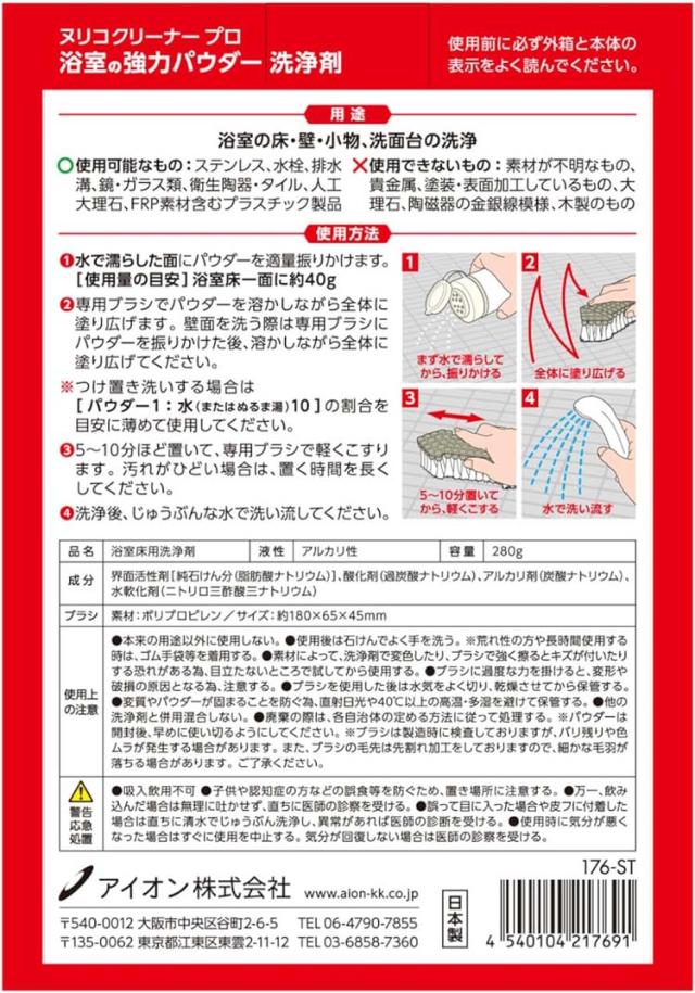 アイオン 浴室用洗剤 パウダー 専用ブラシ付き ヌリコクリーナープロ 176-STに関する詳細なお問合せは下記までお願いします