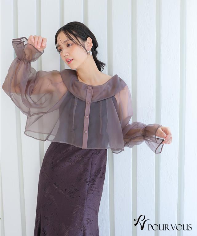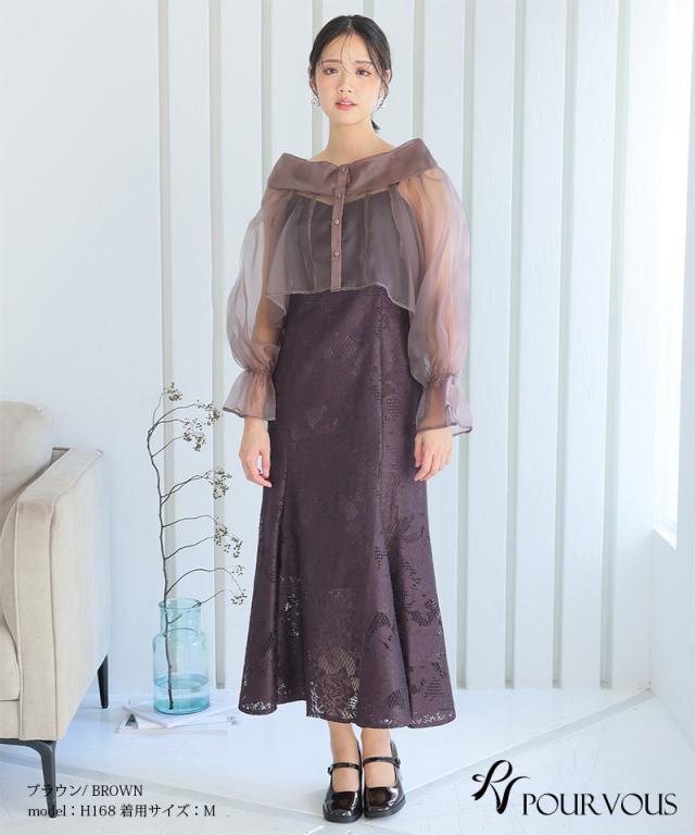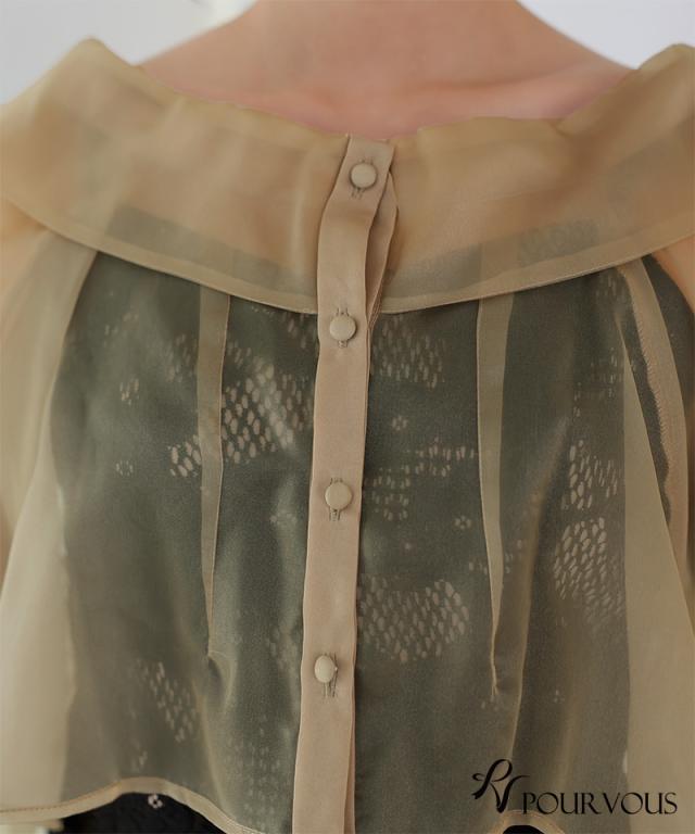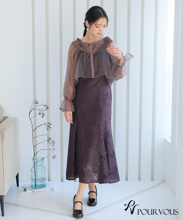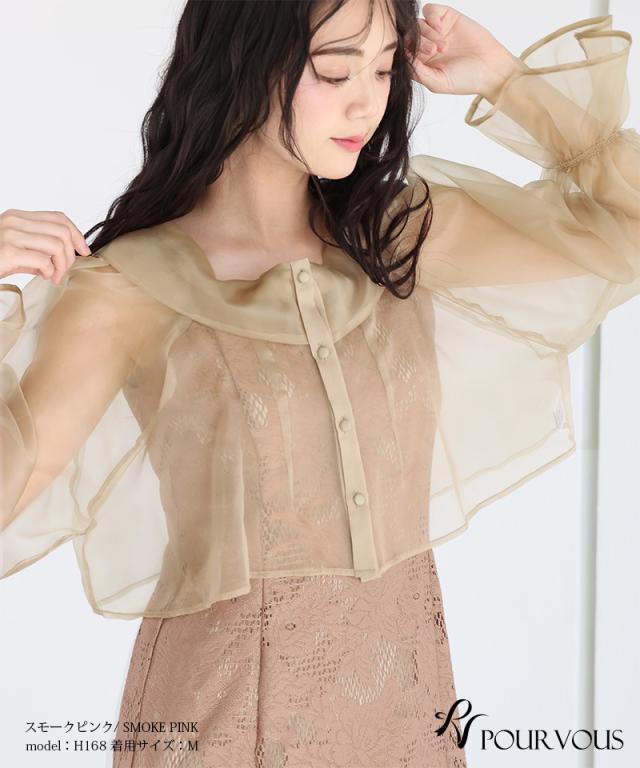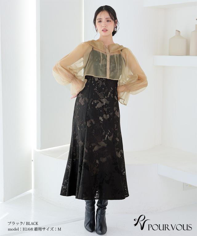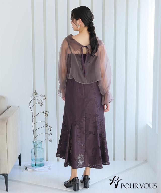 シアーなブラウスと大人っぽいレースキャミワンピのセットドレス。ふんわりと動きのあるブラウスでフェミニンな印象に。大人っぽいレースワンピースで甘くなりすぎず、オトナ女子にもおすすめです。ブラウスは前後を逆にして着用したり、ボタンを開けてボレロの様に着用しても◎