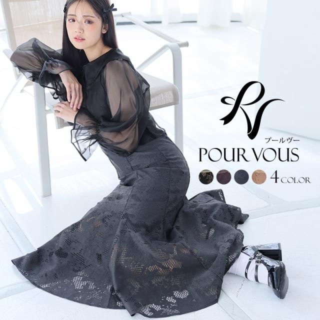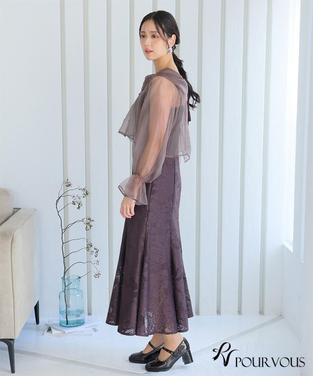マーメイドシルエットのワンピースで自然にスタイルアップ。ふんわりとしたブラウスとタイトめのワンピースがメリハリを演出。