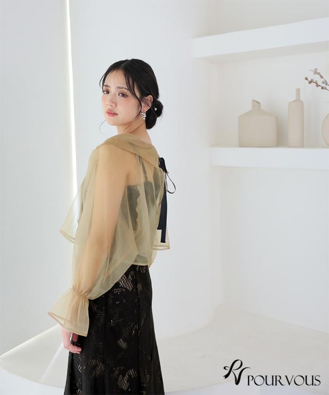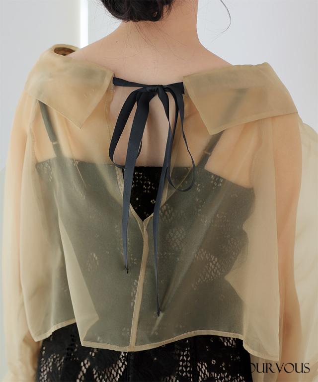 ブラウスは素材は柔らかいオーガンジーを使用しているため、優しい着心地です。