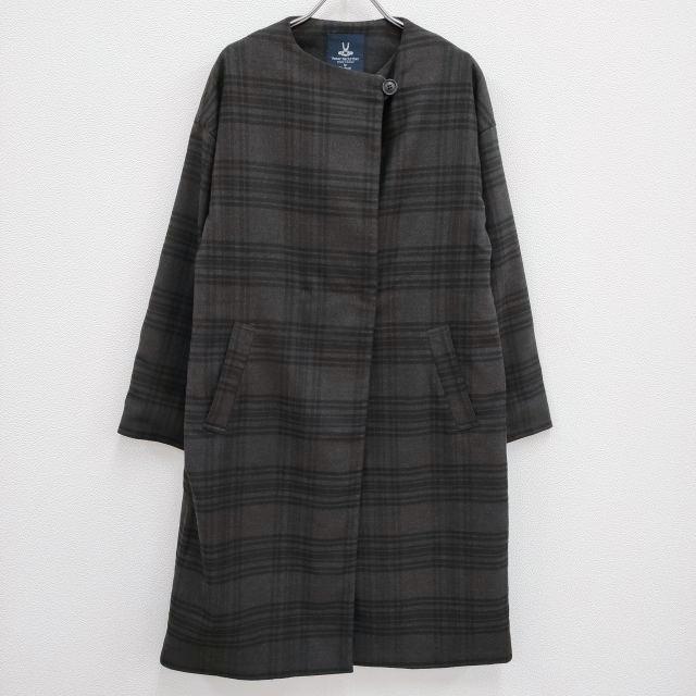 Techichi Peter MacArthur テチチ別注 ノーカラー チェック コート チャコールグレー レディース テチチ【中古】3-1031T♪