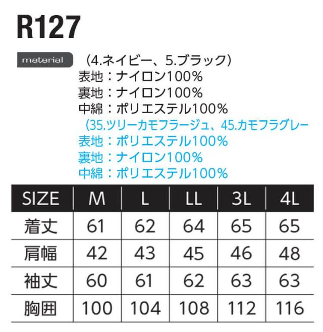 作業服 作業着 防寒 EVENRIVER イーブンリバー ファイバーダウンジャケット R127 サイズM〜LL