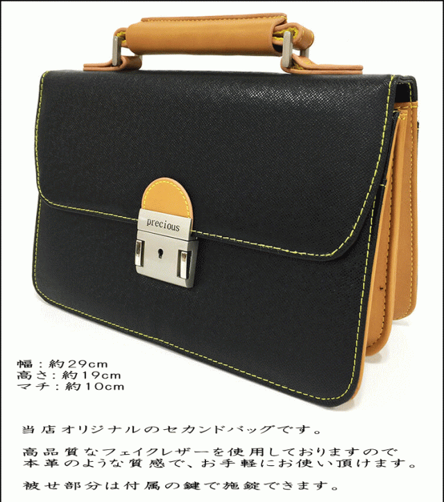 セカンドバッグ メンズ 本革風 当店限定 IN-1602 フェイクレザー メンズ セカンドバッグ ブラック×キャメル
