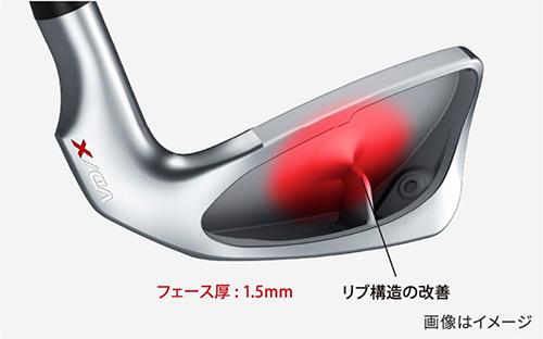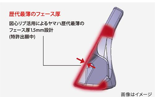独自の図心リブ構造により、フェース厚を薄肉化。反発性能の向上により、圧倒的な飛距離を生み出します。フェースの偏肉設計になりヒッティングエリアも拡大しました。