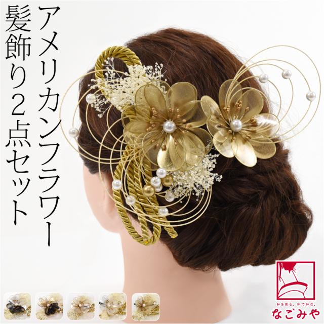 和装 髪飾り 成人式 振袖 通年用 日本製 花ごころ アメリカンフラワー かすみ草 水引 2点セット 花 コーム Uピン 礼装 おしゃれ 大人 レディース 女性10023832