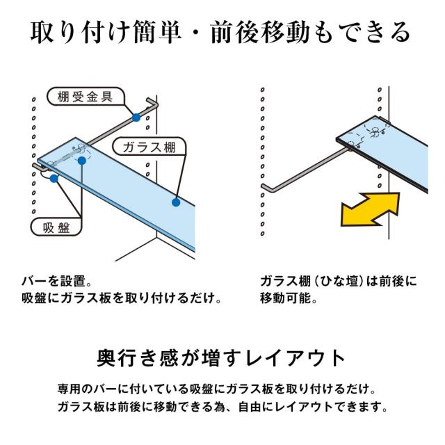 材質 | ガラス棚:板ガラス / 棚受金具:鉄 / 吸盤:PVC |