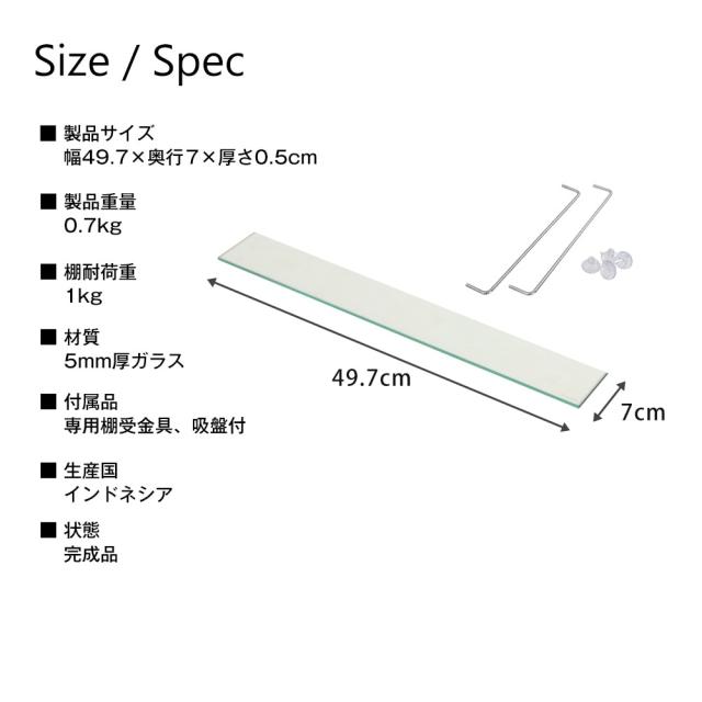 製品サイズ(約 | 幅49.7cm×奥行7cm×厚さ0.5cm(棚受金具:12cm) |