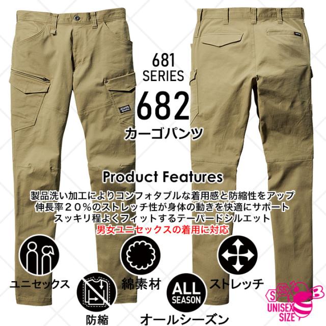 【即日発送】バートル 682 作業服 ストレッチ カーゴパンツ ズボン 男女兼用 オールシーズン 綿素材 防縮 ユニフォーム 作業服 作業着 BURTLE 682シリーズ【4L-5L-6L】