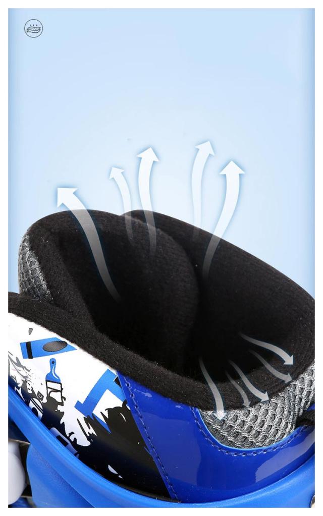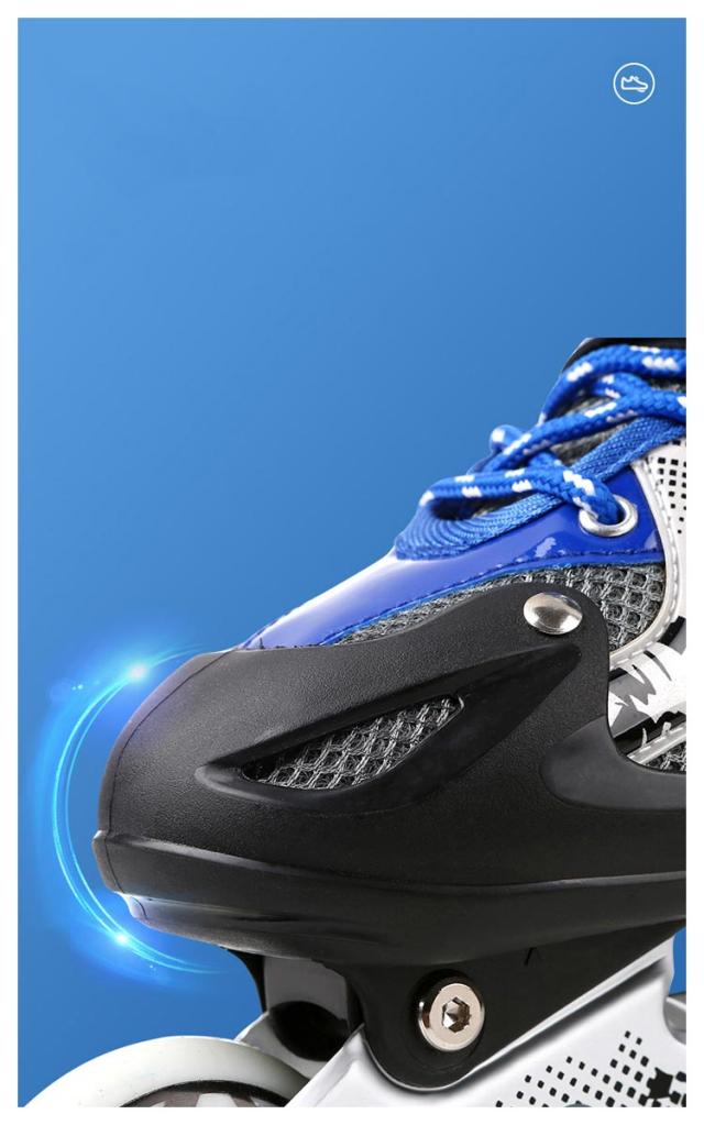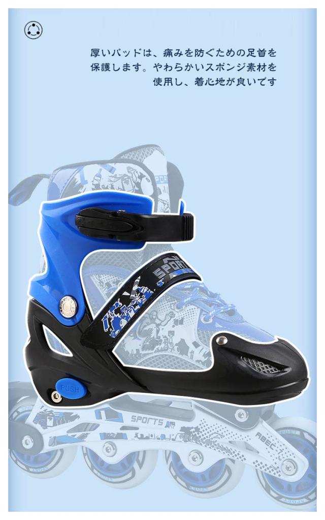 | 全5色!ソフトなフォームと調節簡単なストラップにより、足形にジャストフィット! 厚いパッドは、痛みを防ぐための足首を保護します。やわらかいスポンジ素材を使用し、着心地が良いです。 フレームは強化アルミニウム合金で作られ、厚みのあるフレームはより安全で安定したスケート体験をもたらします。 走行時、一番前のウィールのみ七色に光ります! | |