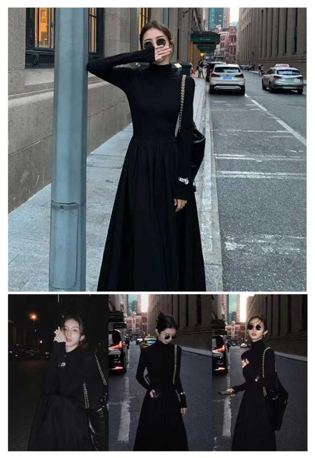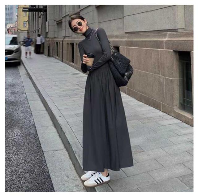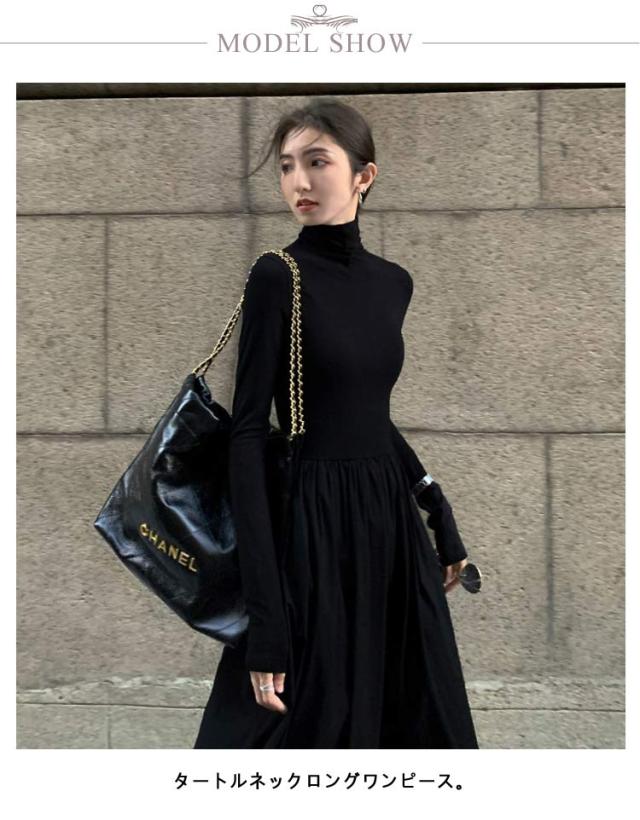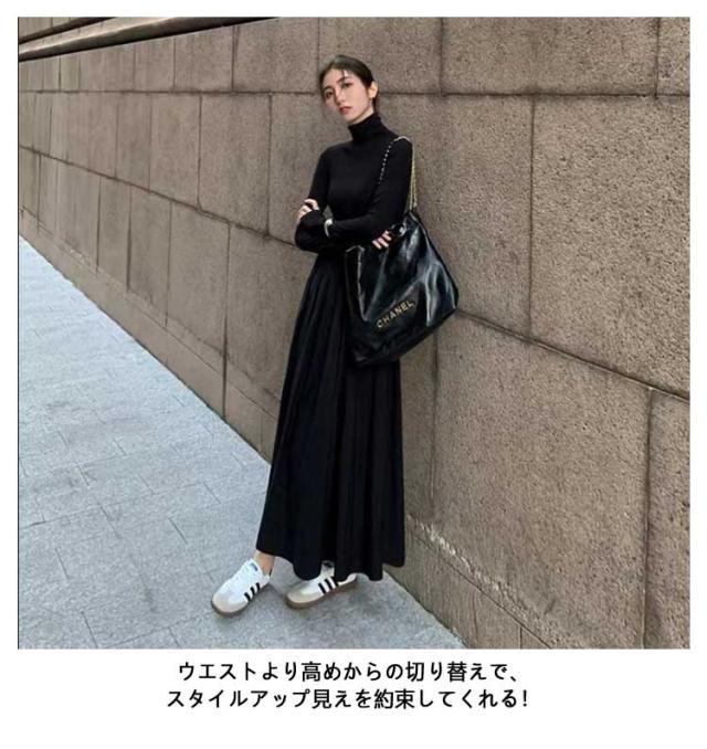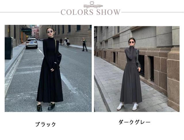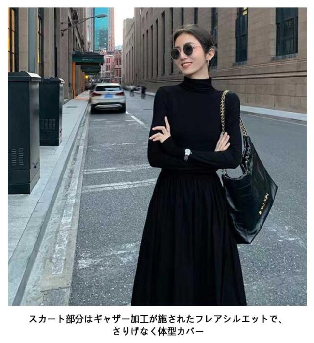 ワンピース レディース 長袖 タートルネック ロング丈 ハイネック ロングワンピース マキシ丈ワンピ ハイウエスト フレア ウエスト切替え Aライン 春 秋 冬 体型カバー 着痩せ おしゃれ シンプル きれいめ オフィスカジュアル フェミニン 上品 おしゃれ オフィス 通勤