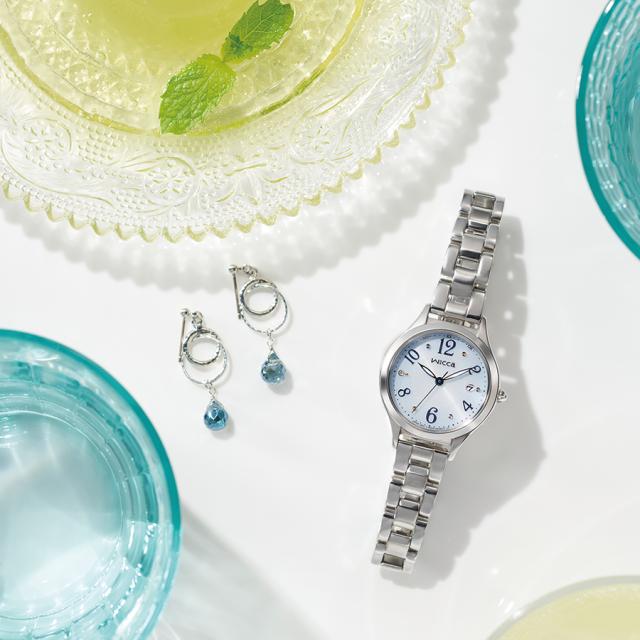 文字盤はwicca初のふんわりと透明感あるグラデーションカラーをのせて、みずみずしい印象に。文字盤中央にはうっすらと水滴が広がるようなフレッシュなドットパターンを忍ばせています。くるんと輝くアラビア数字に、9時位置には、ダイヤを輝かせてさりげないアクセントに。重さを感じないケースサイズもポイント。ほんのり色付くグラデーションダイヤルに、一粒のときめくダイヤがナチュラルな可愛さを演出します。ベルト裏面のつまみのついたバネ棒をスライドさせるだけの操作でバンドの取り外し、取り付けが簡単に行えます。